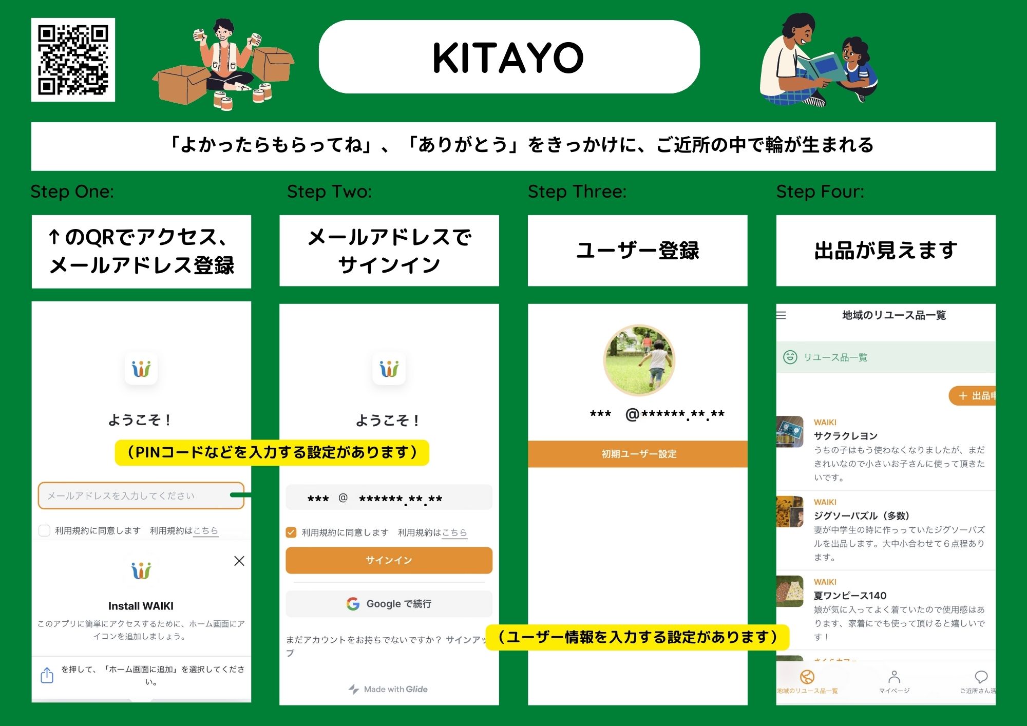 NPO法人WAIKI(ワイキ、吹田市内本町3-25-16)は2023年7月8日、新たなリユースプロジェクト「kitayo」を始動しました。このプロジェクトは使わなくなった物を地域の人々と共有し、新たな価値を生み出すことを目指しています。