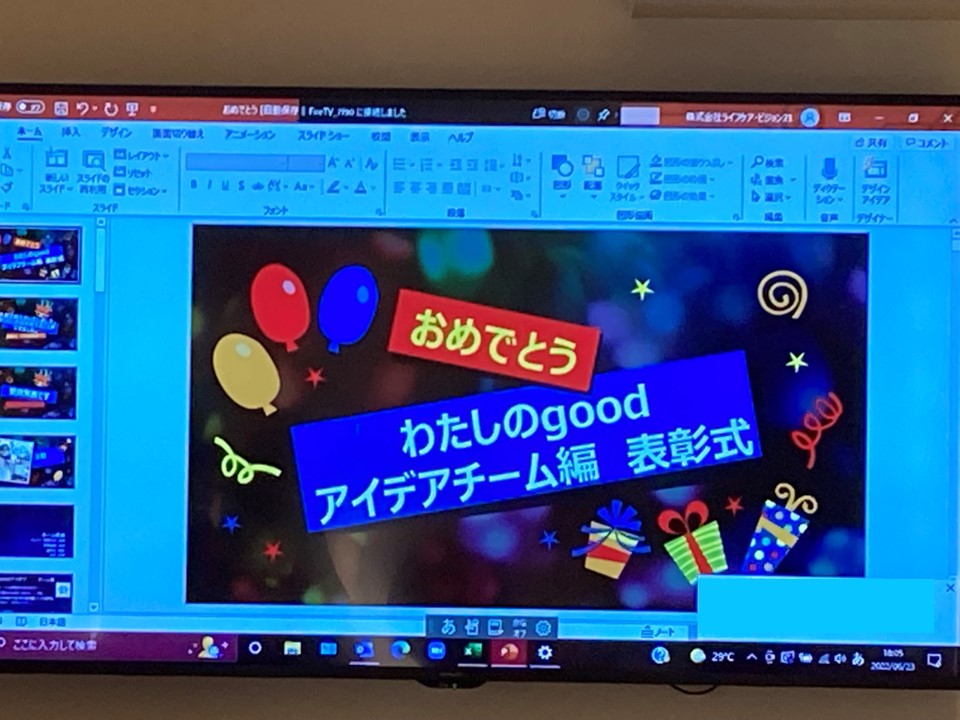 6/22.23の2日間にといて、新卒社員による「わたしのGood アイデア」表彰式を行いました。これは新卒入社の2年生を5チームに分け、これまでの業務の中での気づきを「Goodアイデア」として取り上げるものです。常に新たな視点で気づきを得ることと同時に、自分たちのアイデアをまとめることでチームワークを高めることを目的としています。
